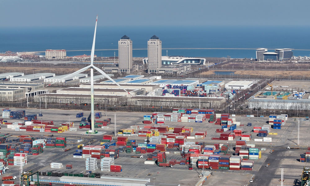 这是天津自贸试验区东疆片区一景(2024年3月20日摄,无人机照片)。新华社记者 赵子硕 摄
